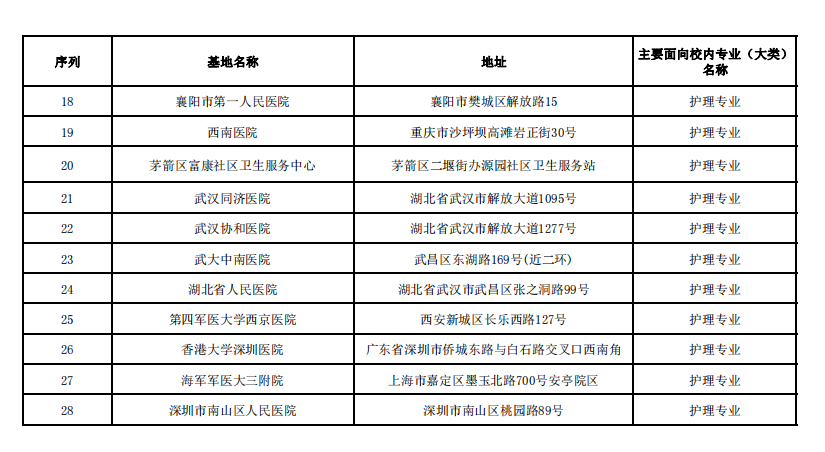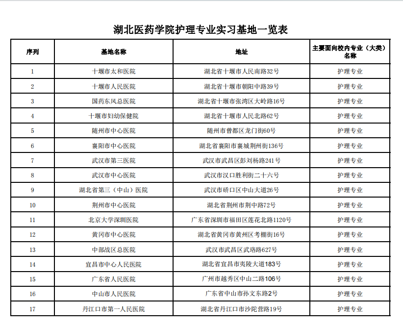 米乐mile官方网站护理专业实习基地一览表(本科生)