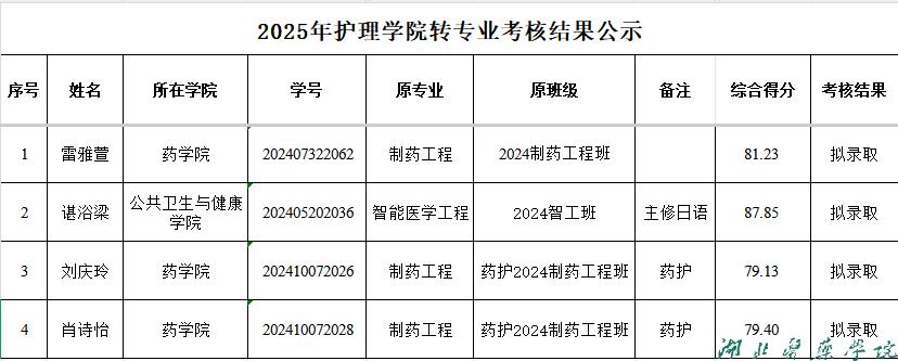 根据校《关于启动2025年转专业及全科分流工作的通知》,按照米乐mile官方网站2025年学生转专业考核方案,我院于2025年2月26日对申请转入学生进行了相关考核。经米乐mile官方网站转专业考核小组考核审议,现将拟录取名单进行公示。公示期三天(2025年2月26日—2025年2月28日)。对公示结果若有异议,请于2月28日下午17:30点前向米乐mile官方网站转专业考核工作小组反映。联系电话:0719-8891700。