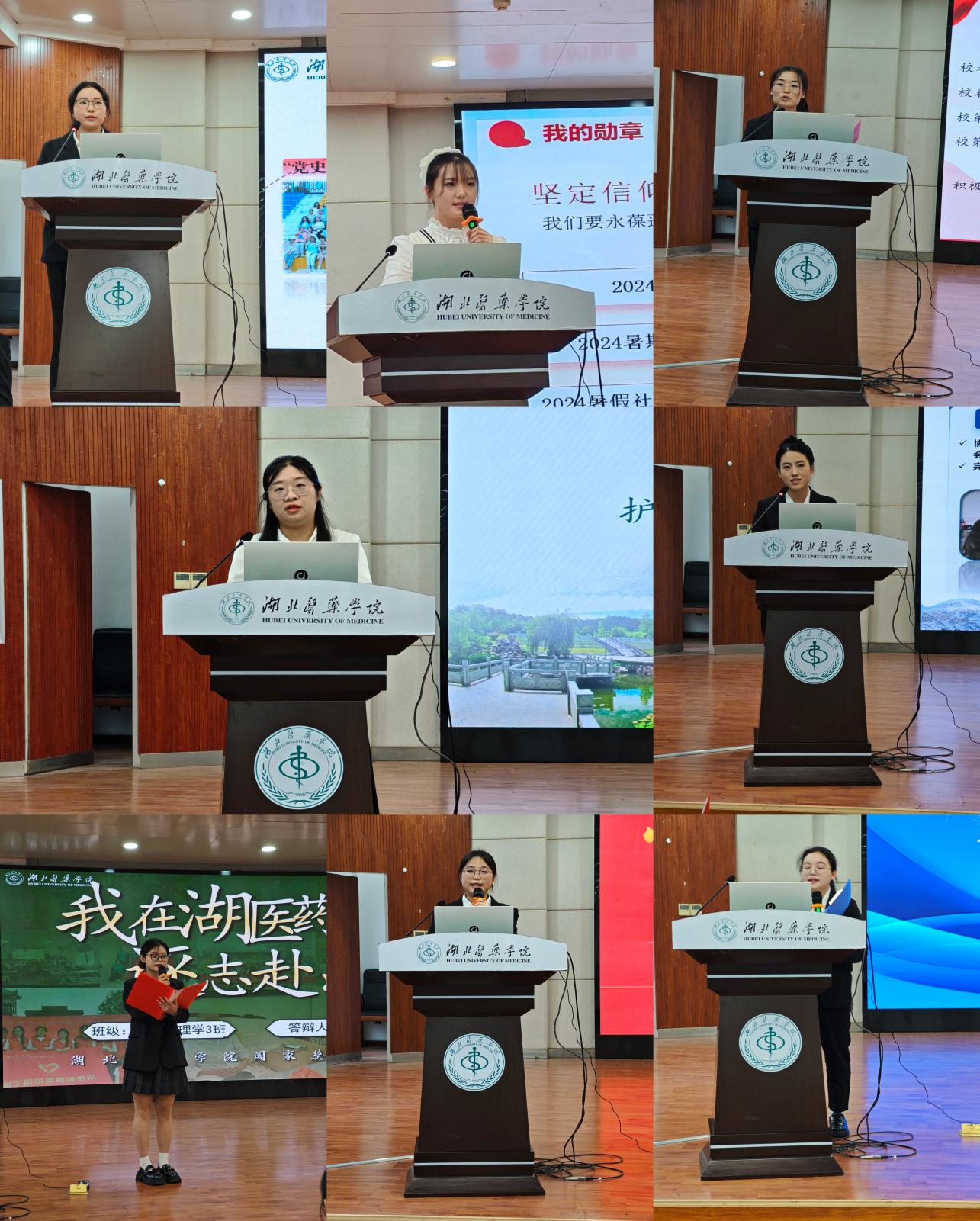 经过前期宣讲动员、学生个人申请,班级推荐、学院审核资质等环节,推选出10名优秀学生参与现场汇报答辩。19名师生代表担任评委。评审前,主持人介绍了本次活动的目的以及评分规则,10名候选人依次进行汇报答辩,结合PPT从思想品质、专业学习、科研创新、实践服务、综合素质等方面展示个人风采。答辩选手逻辑思路清晰,表现从容大方,他们优异的学习成绩、扎实的科研基础、丰富的实践经历赢得现场阵阵掌声。经过激烈角逐,本部万天红、张鑫悦、朱晓颖、黄倩雯、李雪五位同学胜出,喜获国家奖学金资格,药护的胡凯怡同学以第一名的成绩获得国家奖学金资格。