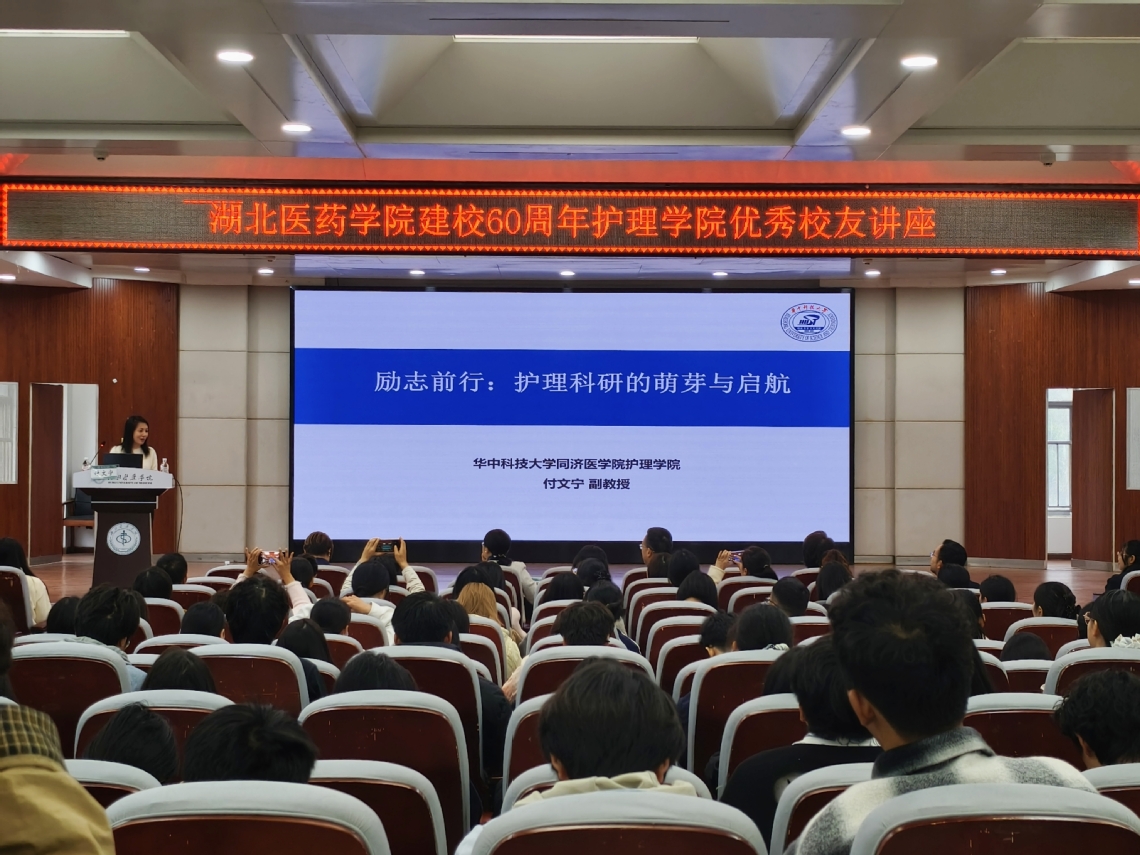 在专题讲座环节,付文宁校友以“护理科研的萌芽与启航”为题,系统阐述了基金申报的要点,包括项目选题、研究方法和实施路径等内容。她结合自身科研经历,启发学生建立科研思维,为未来职业发展夯实基础。